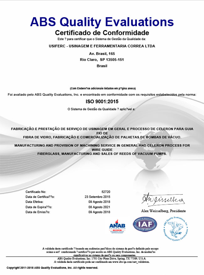 Constituída no ano de 1974 , a USIFERC – Usinagem e Ferramentaria Correa Ltda – Industria e Comercio de Exportação , iniciou suas atividades produzindo peças especiais para multinacionais fabricantes de fibra de vidro.